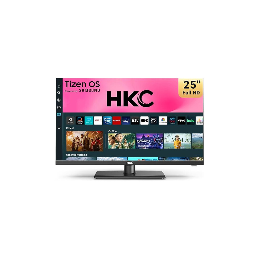 HKC 24 Inch Full HD/FHD 1080P Smart TV, 25 Inch Tizen OS Central Stand Design Television with Netflix Disney+ Gaming Hub Dolby Audio, Made in the UK