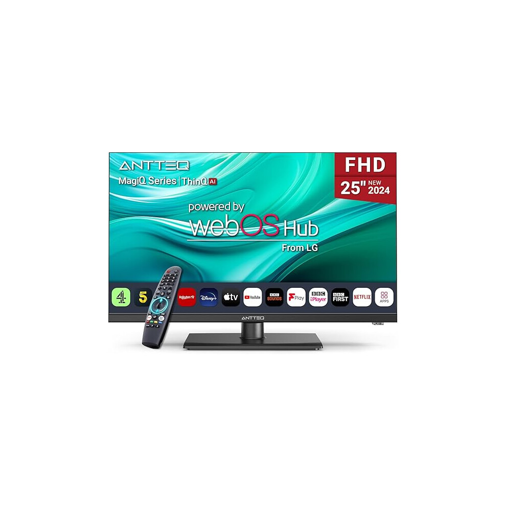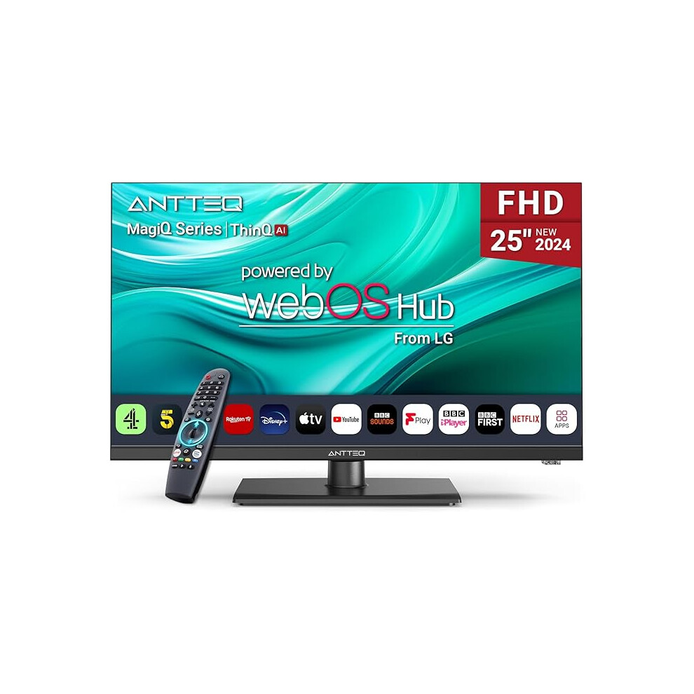 Antteq 25 Inch Smart TV, WebOS FHD TV MagiQ 25" with ThinQ AI Voice Magic Remote, BBC Freeview Netflix YouTube Airplay WiFi 2024 Black Televisions