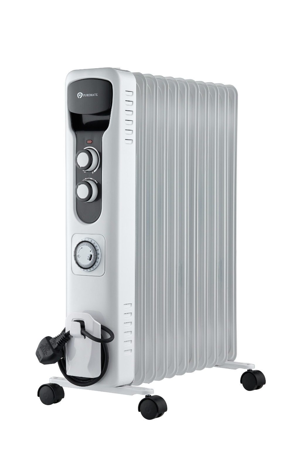 PureMate® 2500W Oil Filled Radiator, 11 Fins - Heater with Timer & Thermostat