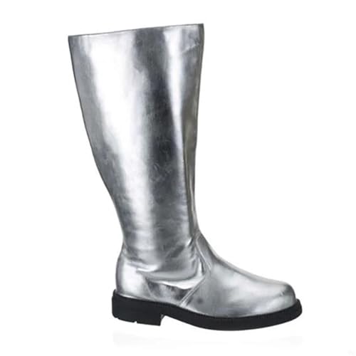 EWUHYFP Men Motorcycle Riding Equestrian Mens Boots Knee High Casual Zipper Cowboy Plus-size 38-48(Silver,250(EU-40))