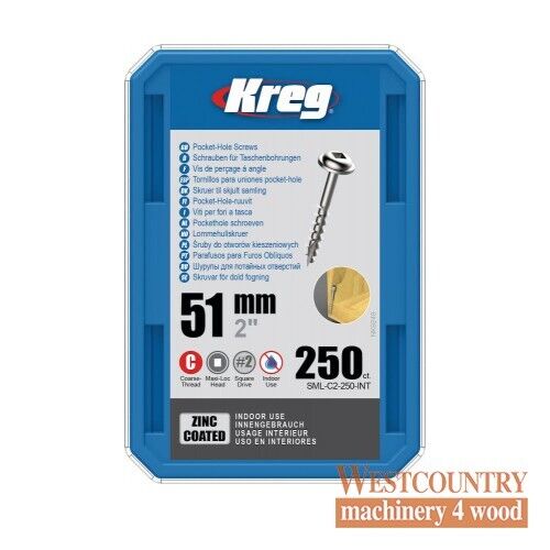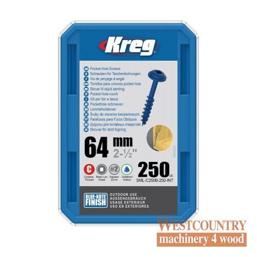Kreg SML-C2B-250-EUR Blue-Kote Pocket Screws 51mm/2"Coarse Washer-Head, qty 250