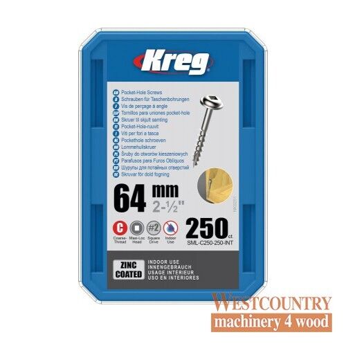 Kreg SML-C250-250-EUR Kreg Pocket Hole Screws - 64mm / 2-1/2" x 8 Coarse, Washer