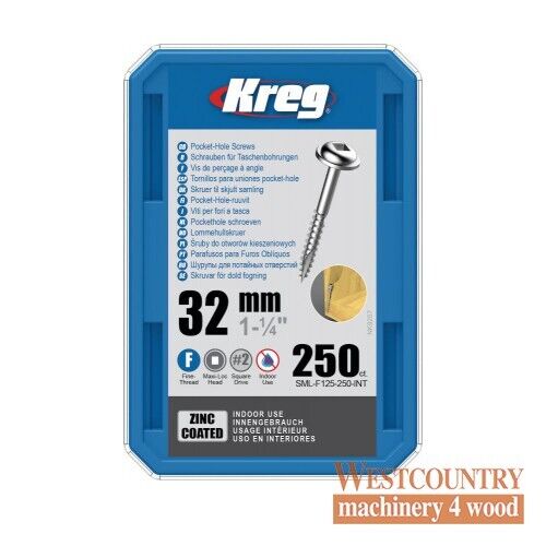 Kreg SML-F125-250-EUR Kreg Pocket Hole Screws - 32mm / 1-1/4" x 7 Fine, Washer-H