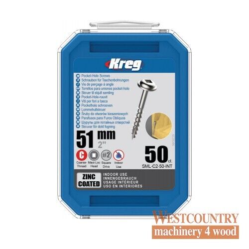 Kreg SML-C2-50-EUR Kreg Pocket Hole Screws - 51mm / 2" x 8 Coarse, Washer-Head,
