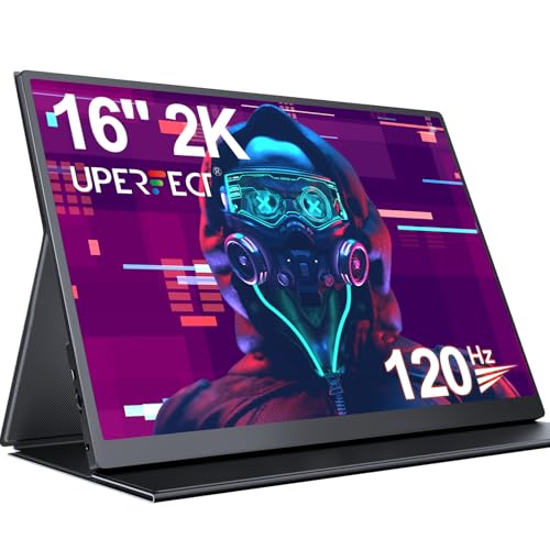 UPERFECT 120Hz 2K Portable Monitor 16" 2560x1600 QHD Gaming Monitor 16:10, 400 Nits, 1200:1, Portable Small Screen w/VESA & Cover for Laptop, HDR FreeSync Eye Care External Second Screen for PC/Phone