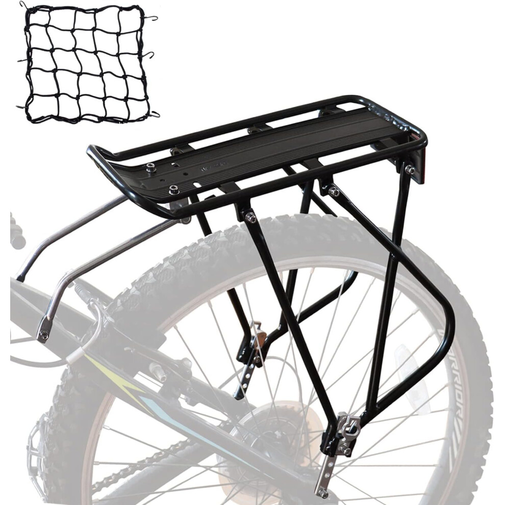 Bike Cargo Rack Bungee Cargo Net & Reflective Logo Universal Adjustable Bicycle Rear Luggage Touring Carrier Racks 25kg Capacity Mountain Road Bike for 26"-29" Frames