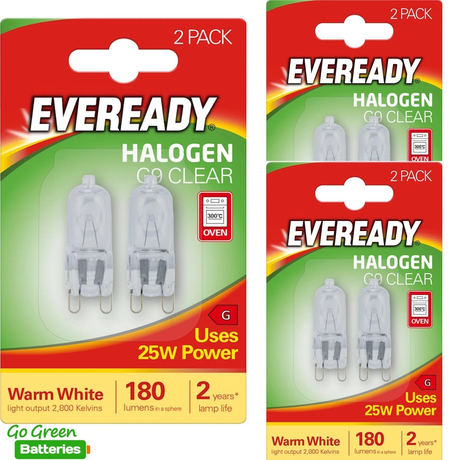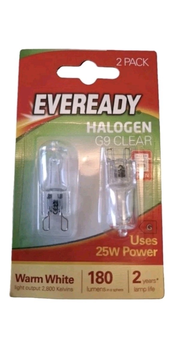 2x EVEREADY G9 Eco 25w Halogen Bulb 250 Lumen Clear Capsule Lamp Oven Wax Burner
