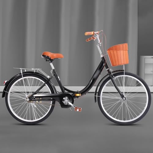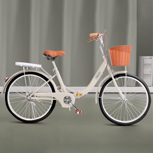 24 Inch 26 Inch Folding Bike for Adult, High Carbon Steel Frame Folding Bicycle with Rear Rack and Front Basket F,26 inch