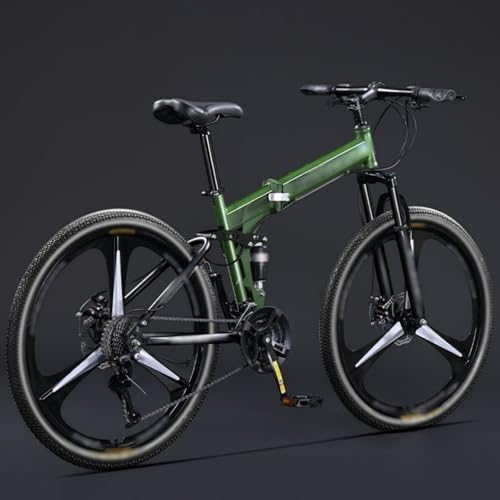 GLSQBVRP 24 26 Inch Folding Mountain Bike—21 Speed Foldable Mountain Bicycle with Dual Disc Brakes, Spoke Wheels, Dual Suspension Design for Adult Men Women A,24inch