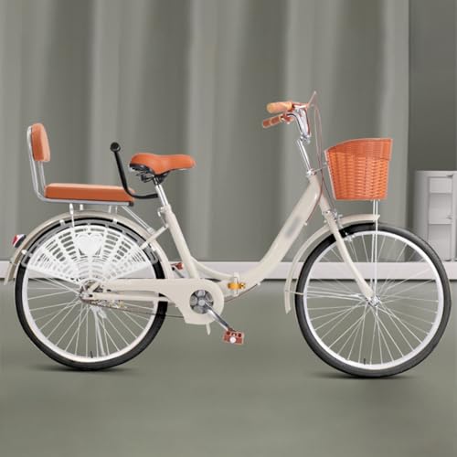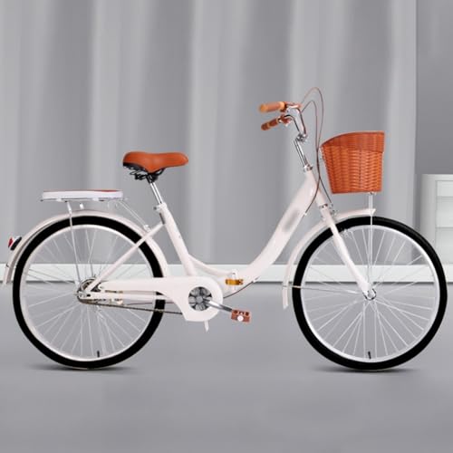 GLSQBVRP 24 Inch 26 Inch Folding Bike for Adult, High Carbon Steel Frame Folding Bicycle with Rear Rack and Front Basket C,24 inch