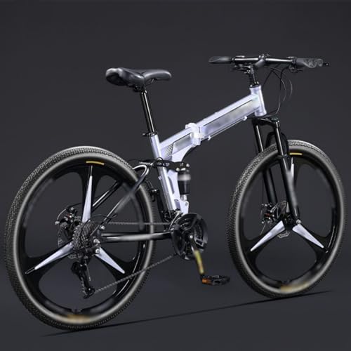 Fridgestea 26 Inch Folding Mountain Bike, 21 Speed Full Suspension MTB Bicycle with Dual Disc Brakes, Height Adjustable for Adults Men Women Cycling Enthusiasts (Black & White)
