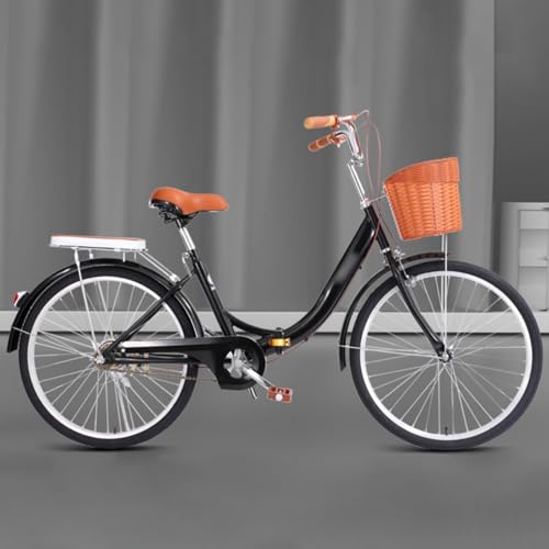 24 Inch 26 Inch Folding Bike for Adult, High Carbon Steel Frame Folding Bicycle with Rear Rack and Front Basket E,24 inch