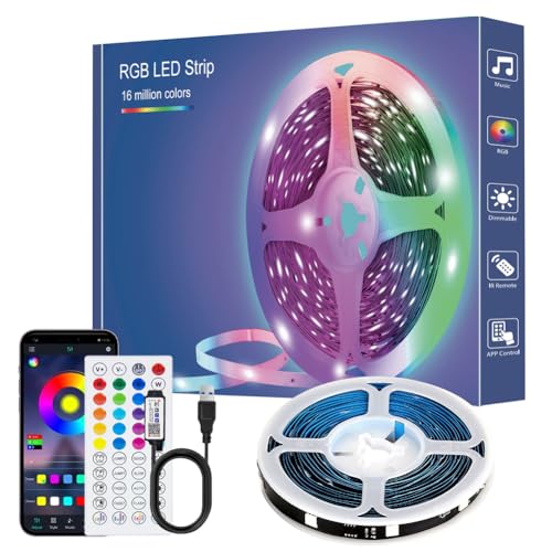 LED Strip Lights 1m/3.28ft, Smart App Control Remote, 5050 RGB Music Sync Colour Changing, Led Lights for Decoration, Bedroom Lighting, Party, Cabinet, TV Backlight