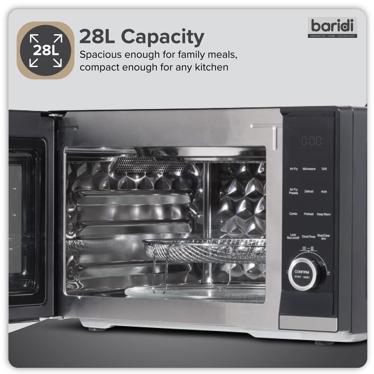 Baridi DH277 7-in-1 Air Fryer Microwave & Grill, 28L Capacity - Black