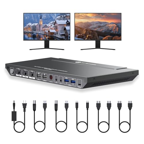 AV Access KVM Switch Dock 2 Monitors 2 Laptops, 4K KVM Switch Dual Monitor, 2 USB-C MST Ports, 60W PD for Each PC, 1G Ethernet, EDID Emulation, 2K@144Hz, 1080P@240Hz, Ideal for Home Office & Gaming