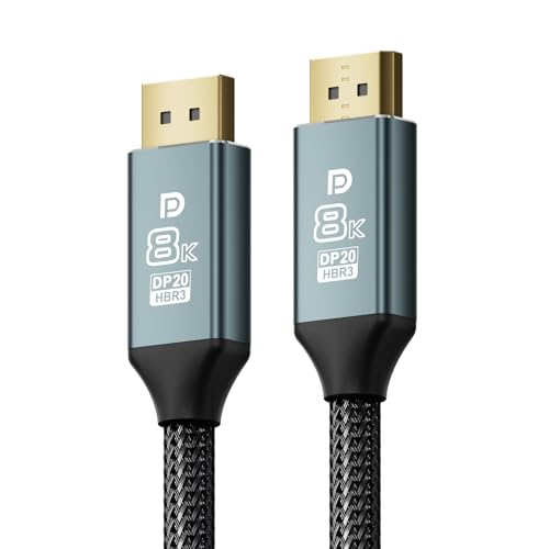 Herfair 16K DisplayPort Cable 2.1, DP Male to Male Wire 16K@60Hz,8K@60Hz, 4K@144Hz, 2K@240Hz HBR3 Support 48Gbps,HDR,HDCP 2.2,FreeSync G-Sync,Braided Display Port for Gaming Monitor, Graphics, PC (3M)