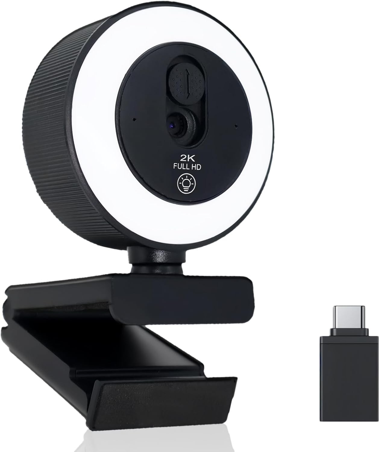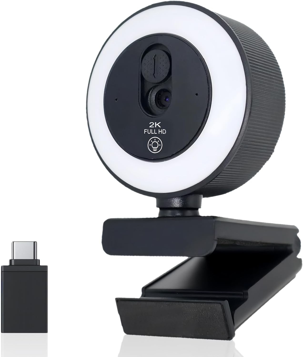 2K Webcam for Loptop and PC, laptop camera with Light, USB Webcam with Anti-Dis