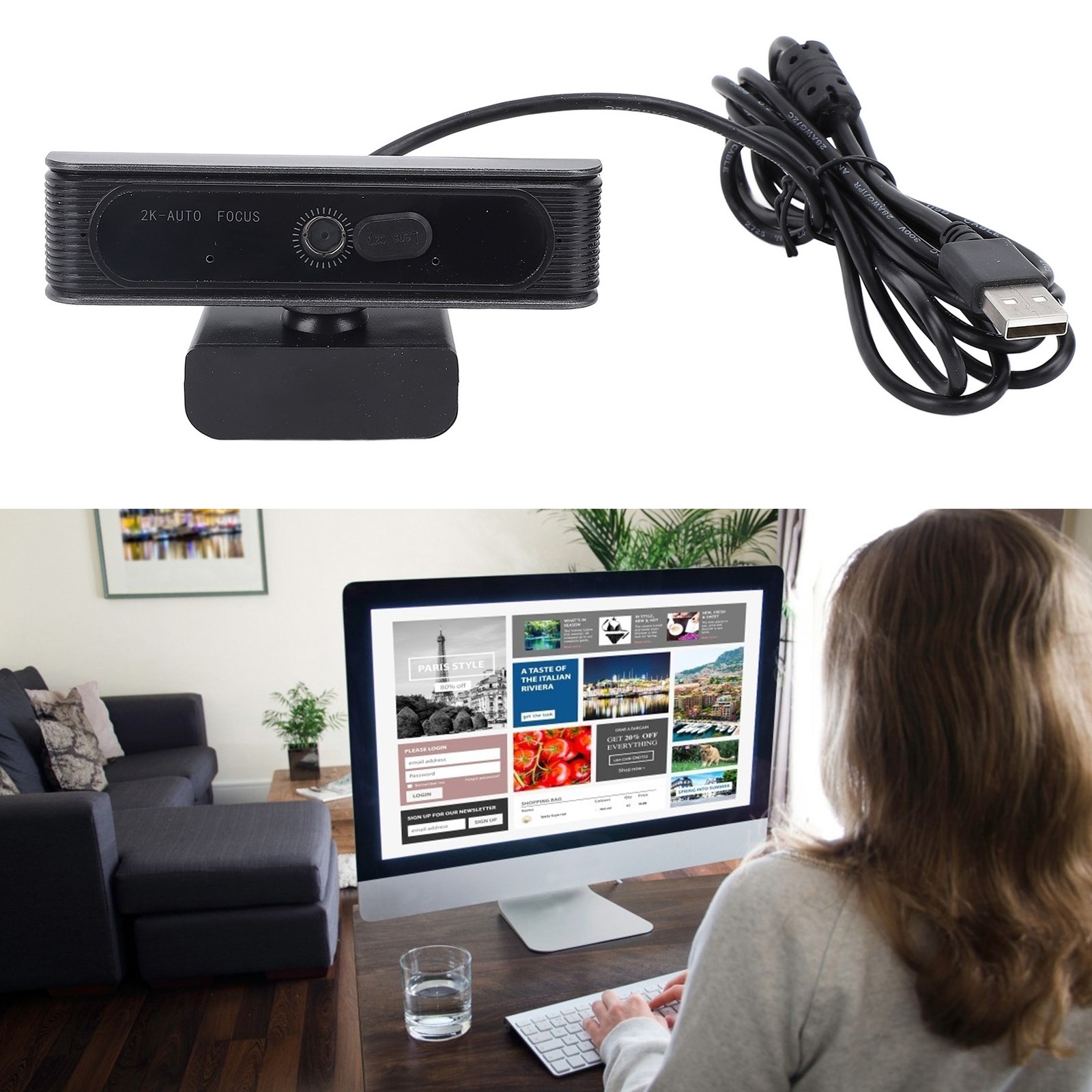 Usb Webcam 2K 30Fps Auto Focusing Hifi Speaker Noise Reduction Mic Plug An