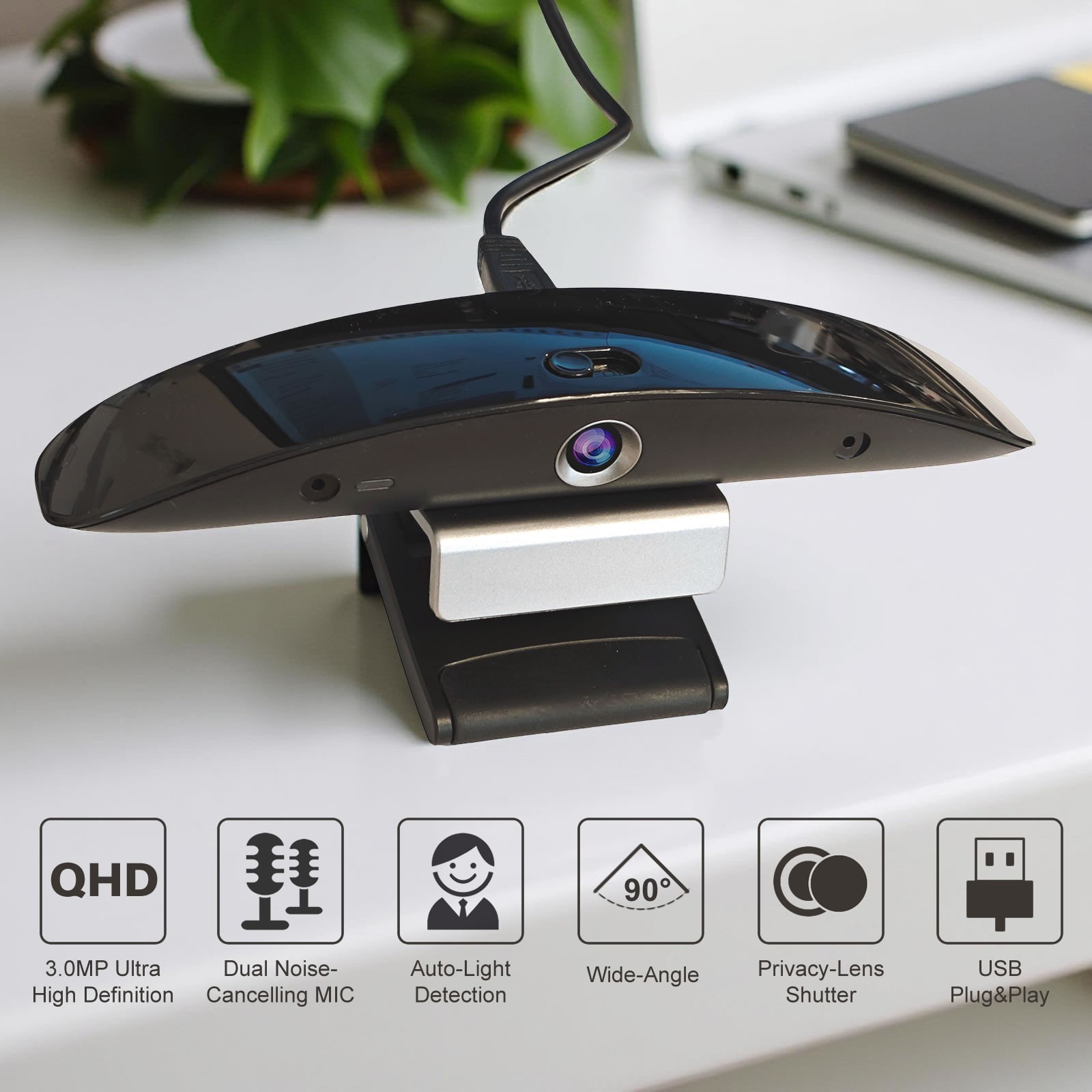 QHD 3MP 2K USB Webcam With Dual Microphone For Microsoft Teams, Zoom,Google Meet