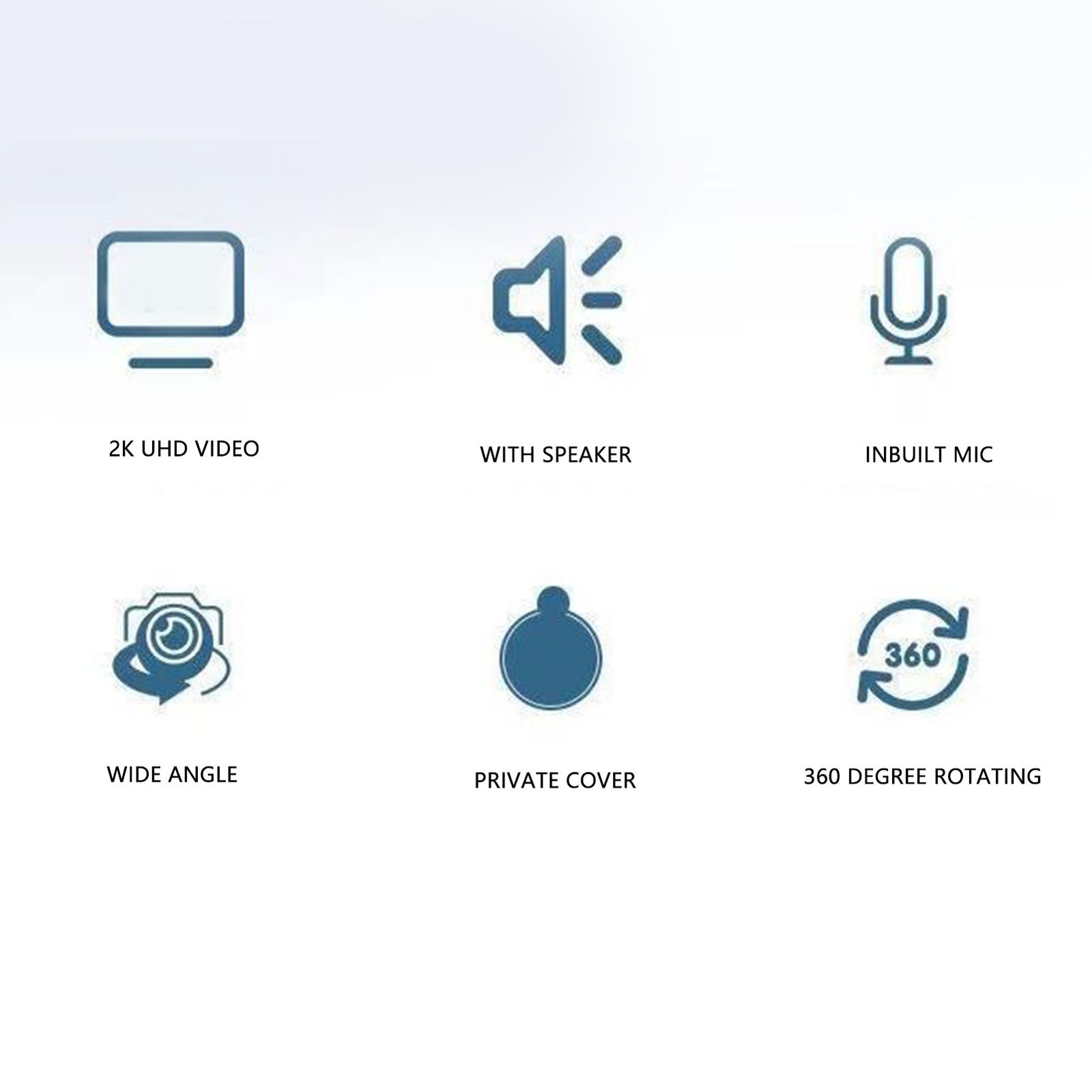 2K Webcam with 2 Speakers Built-in Mic,USB Stream Camera for Desktop5373