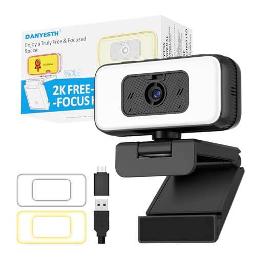 Danyesth 2K Webcam for PC/Laptop/Mac with Light, USB Computer Camera with Microphone for Desktop Monitor【Focus in Shared or Home Space】 Auto Anti-Disturb Backlight, Zoom, Flip, Plug & Play