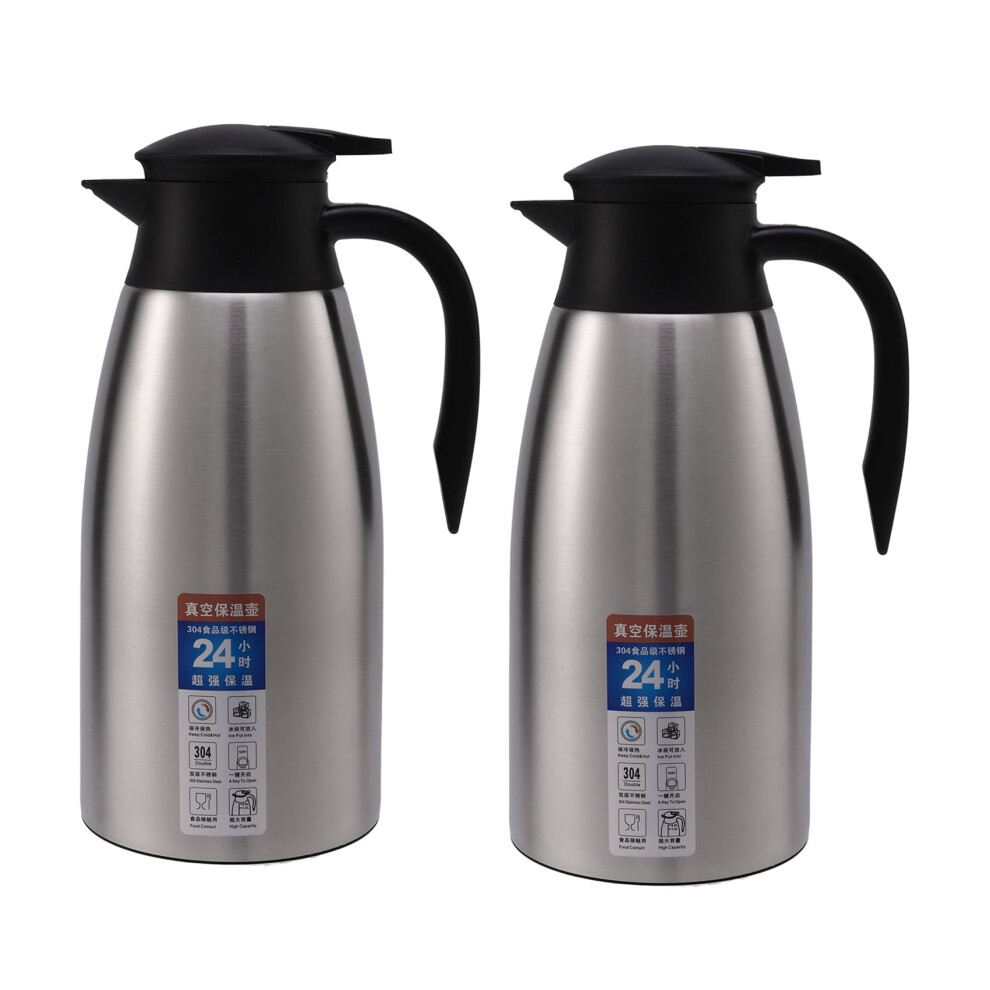 2X Silver 304 Stainless Steel 2L Thermal Flask Vacuum Insulated Water Pot Coffee Tea Milk Jug Thermal Pitcher