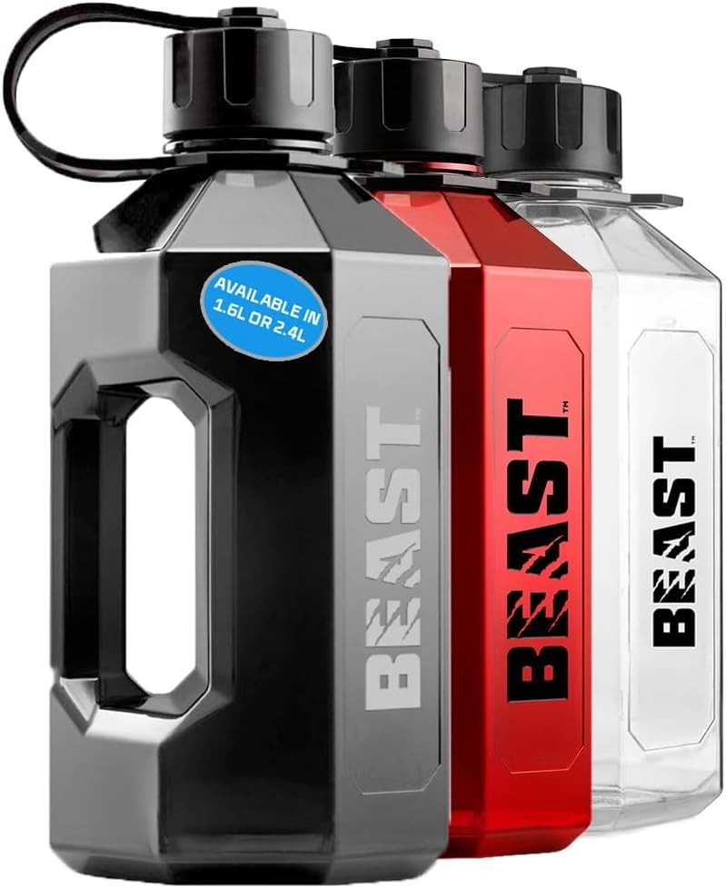 Alpha Designs Beast 2 Litre Water Bottle - 2.4l Large Drinks Water Jug - Eddie Hall Merch - Holiday, Travel - Black