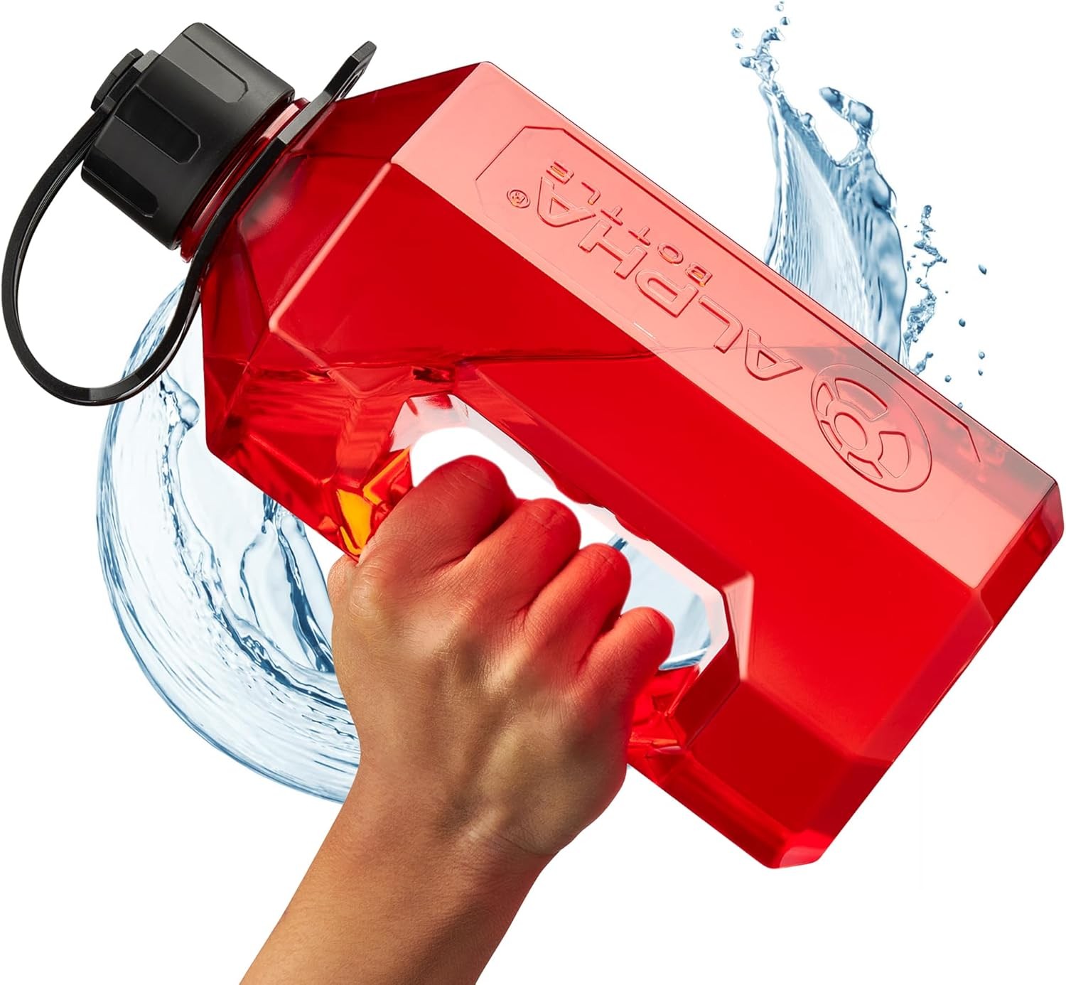 Alpha Designs | 2 Litre Water Bottle | 2.4l Large Drinks Water Jug | Gym, Holiday, Travel | Red