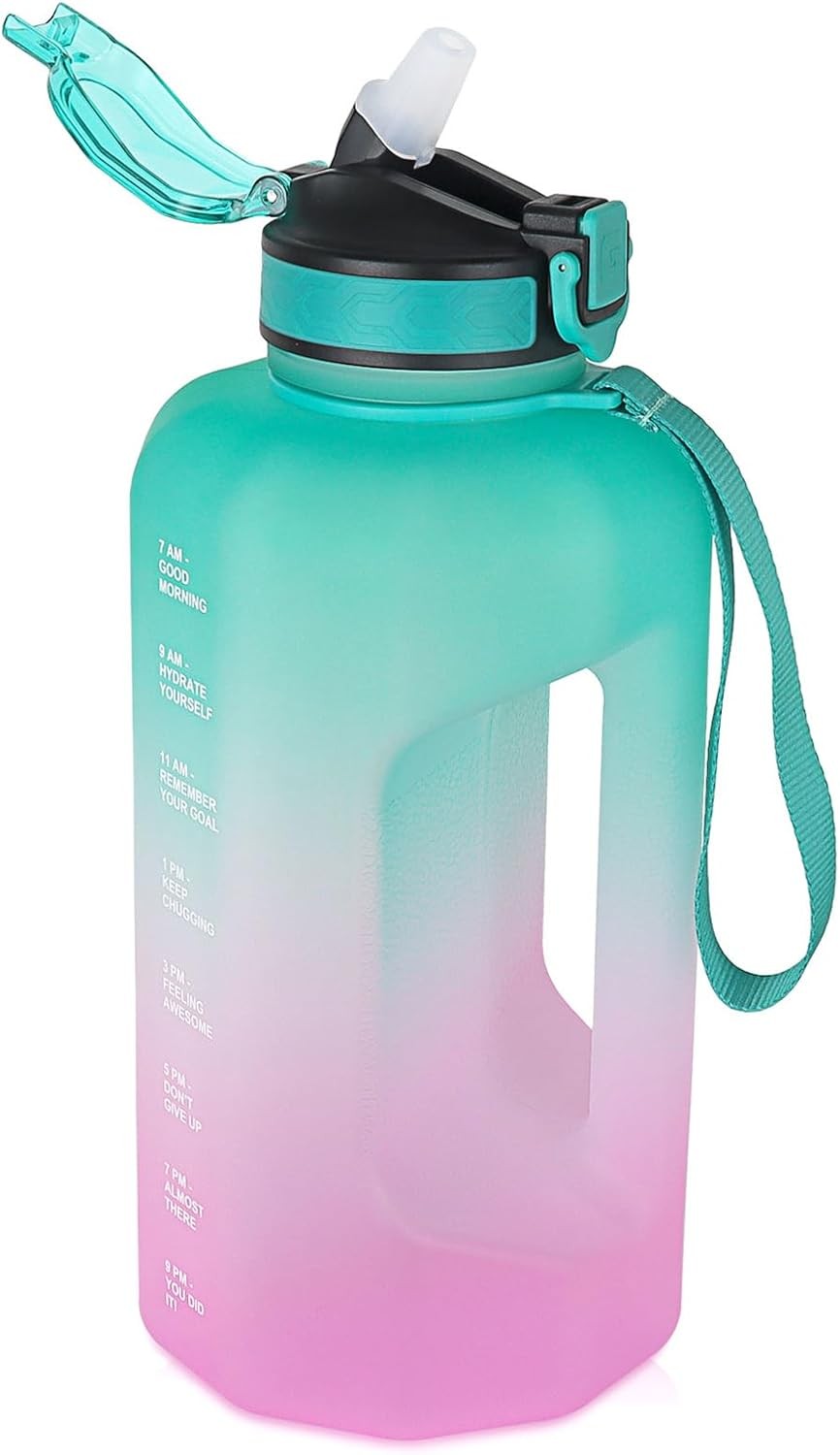 QuiFit 2.2 Litre Motivational Water Bottle - with Straw & Time Marker,Wide Mouth,BPA Free,Reusable,Ideal for Gym,Outdoor Sport,Home & Office (Green/Pink Gradient, 2.2 Liter)