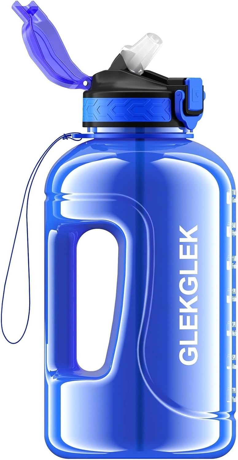 GLEKGLEK 2 Litre Water Bottle with Straw, Motivational 2000 ml, 2l - Blue