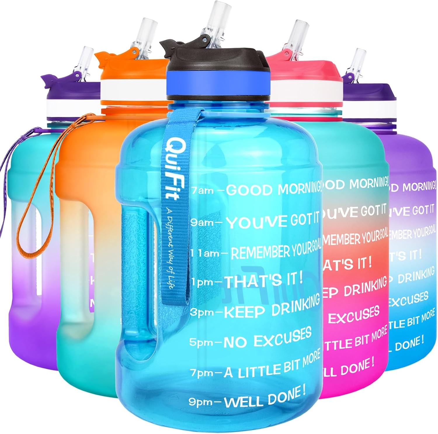 QuiFit 3.78/2.2 Litre Motivational Water Bottle - with Straw & Time Marker,Wide