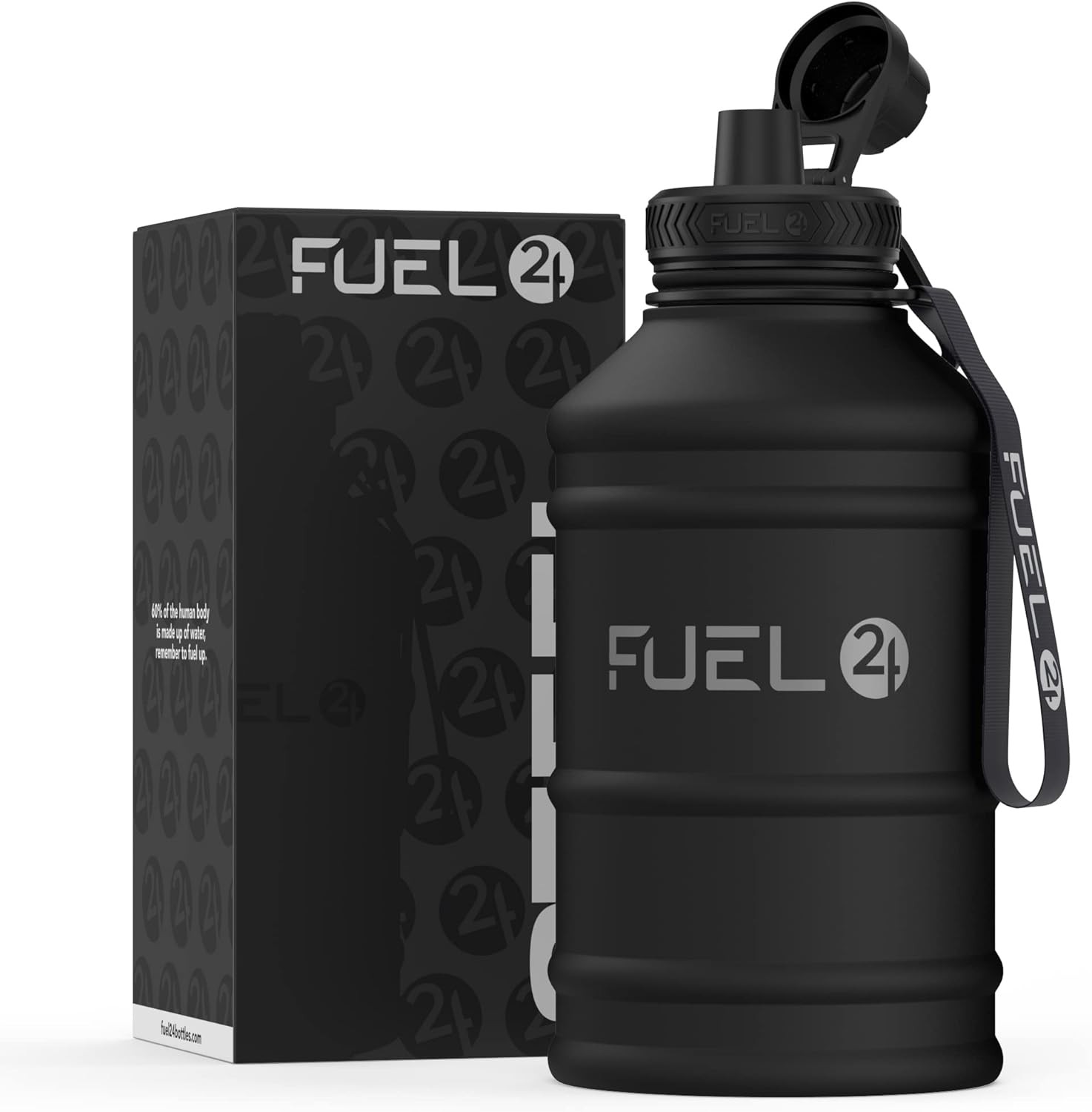 Fuel24 Stainless Steel Jug - 1.3 or 2.2 Litre Water Bottle - Extra Strong, BPA Free, Leak Proof - Large Gym Sports Bottle, 1.3L, 2.2L, Metal Bottle - Colour Options