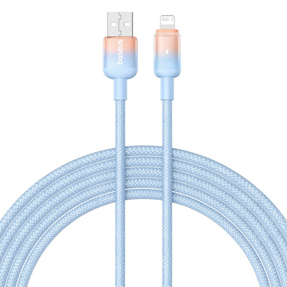 (Blue) BASEUS Discolor Series 2m Fast Charging Cable USB-A to iP 2.4A Nylon Braided Data Cord - Yellow