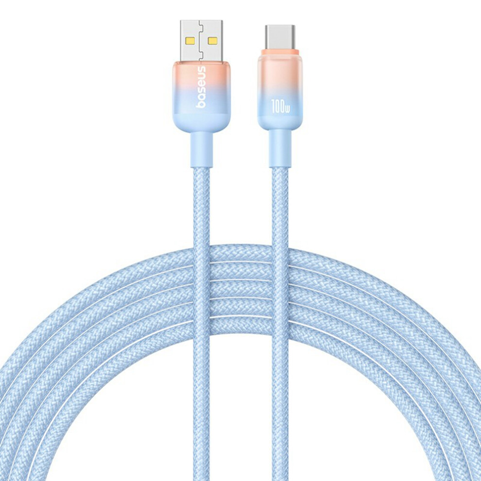 (Blue) BASEUS Discolor Series 2m Fast Charging Cable USB-A to Type-C 100W Nylon Braided Data Cord - Black