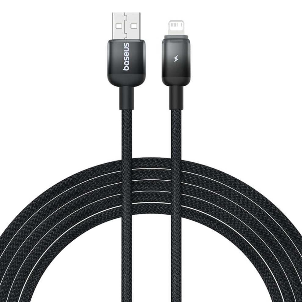 (Black) BASEUS Discolor Series 2m Fast Charging Cable USB-A to iP 2.4A Nylon Braided Data Cord - Yellow