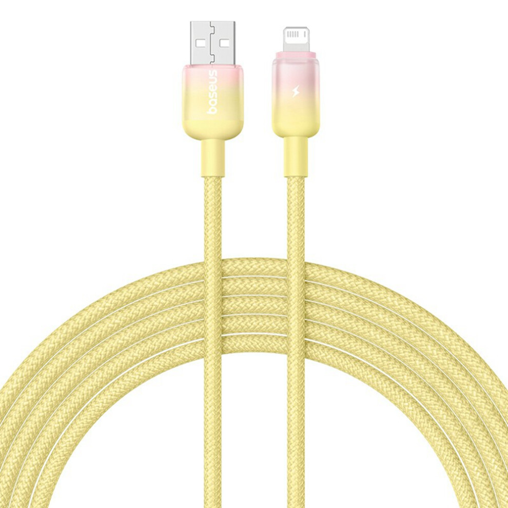 (Yellow) BASEUS Discolor Series 2m Fast Charging Cable USB-A to iP 2.4A Nylon Braided Data Cord - Yellow