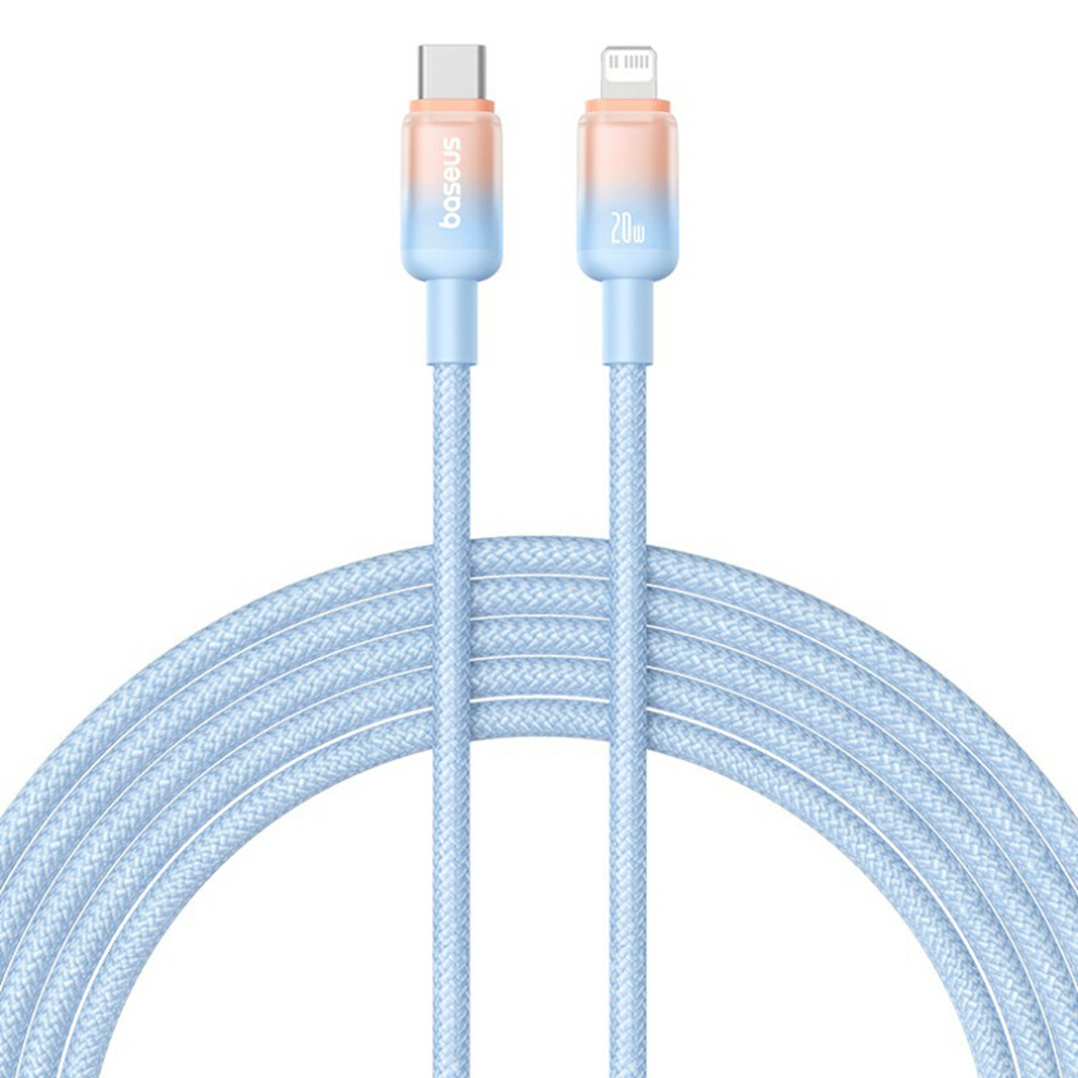 (Blue) BASEUS Discolor Series 2m Fast Charging Cable Type-C to iP 20W Nylon Braided Data Cord - Black