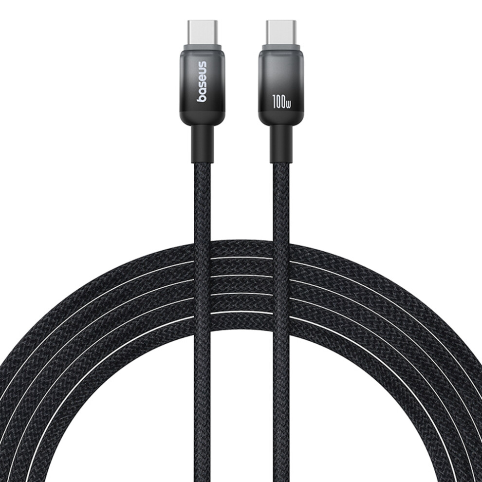(Black) BASEUS Discolor Series 2m Fast Charging Cable USB-C to USB-C 100W Nylon Braided Data Cord - Black