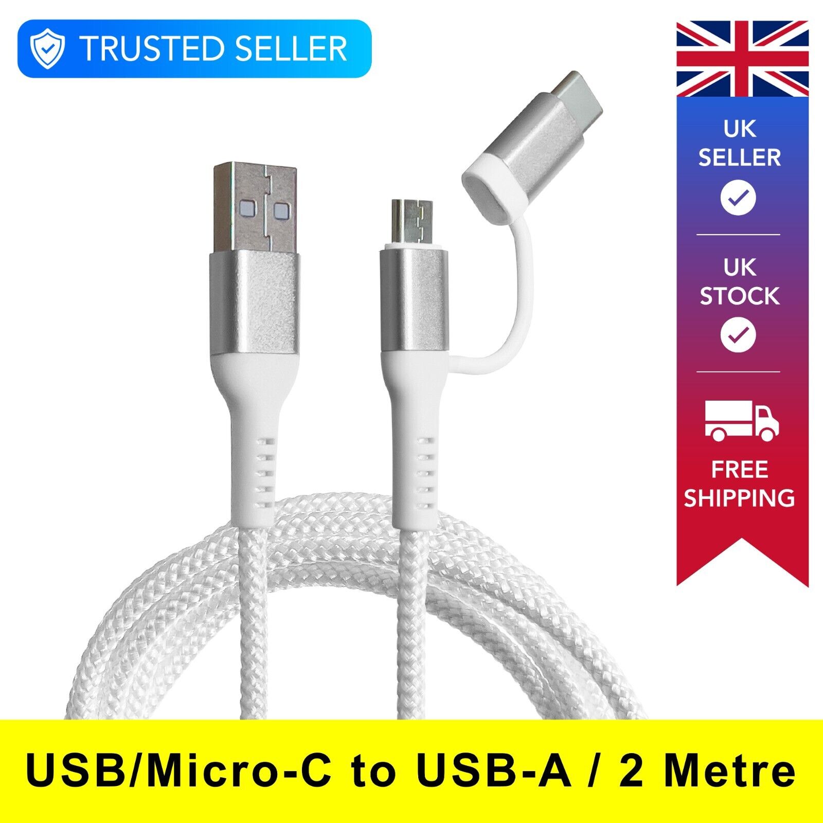 2m Braided Charging Cable, USB/USB C to USB A, Heavy Duty - Super-Fast Charging