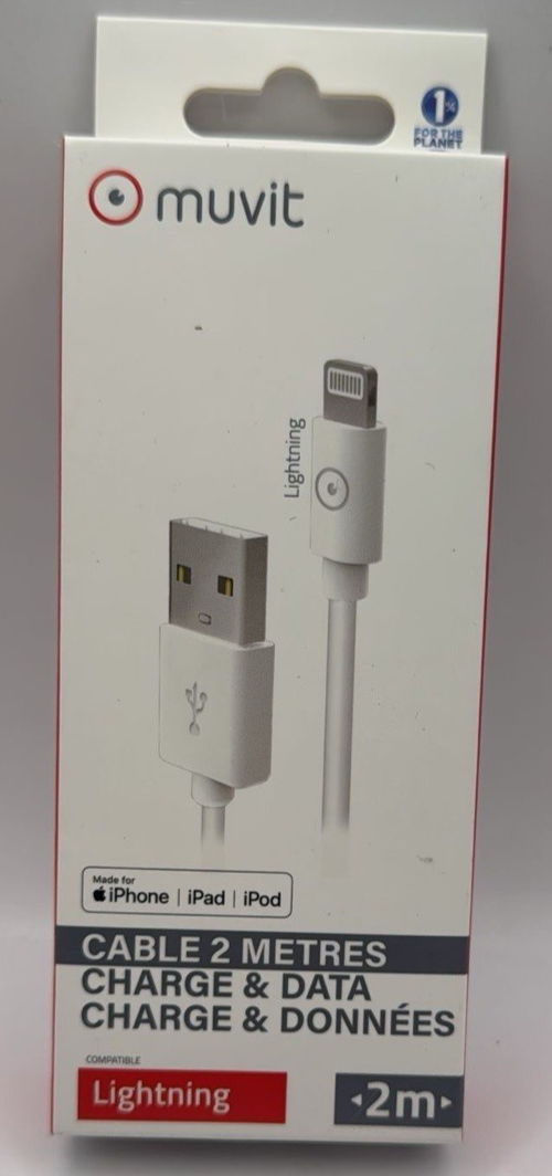 Muvit 2m Charging Cable 2.4A Charge & Data –iPhone, iPad & iPod Compatible