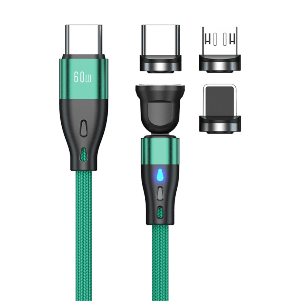(Green) E7 2m Magnetic Charging Cable 540 Degree Rotation USB-C to USB-C IP Micro USB 60W 27W 12W Data Cord - Black