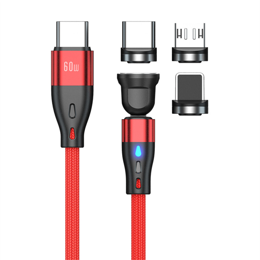 (Red) E7 2m Magnetic Charging Cable 540 Degree Rotation USB-C to USB-C IP Micro USB 60W 27W 12W Data Cord - Black