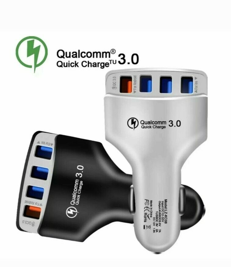 Fast Car Charger USB Socket 4-Port Adapter For iPhone Samsung + 2m iPhone Cable
