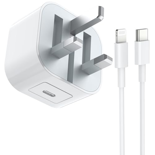 ilikable USB C Plug, 20W iPhone Fast Charger Plug with 2M USB C to Lightning Cable PD USB C Charger UK Power Adapter for iPhone 14 13 Mini 12 11 Pro Max, iPad Pro AirPods White