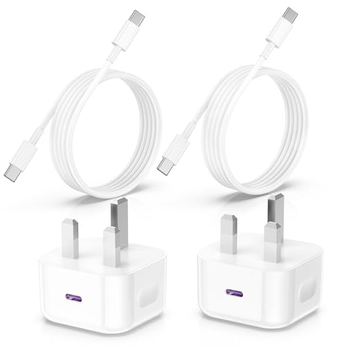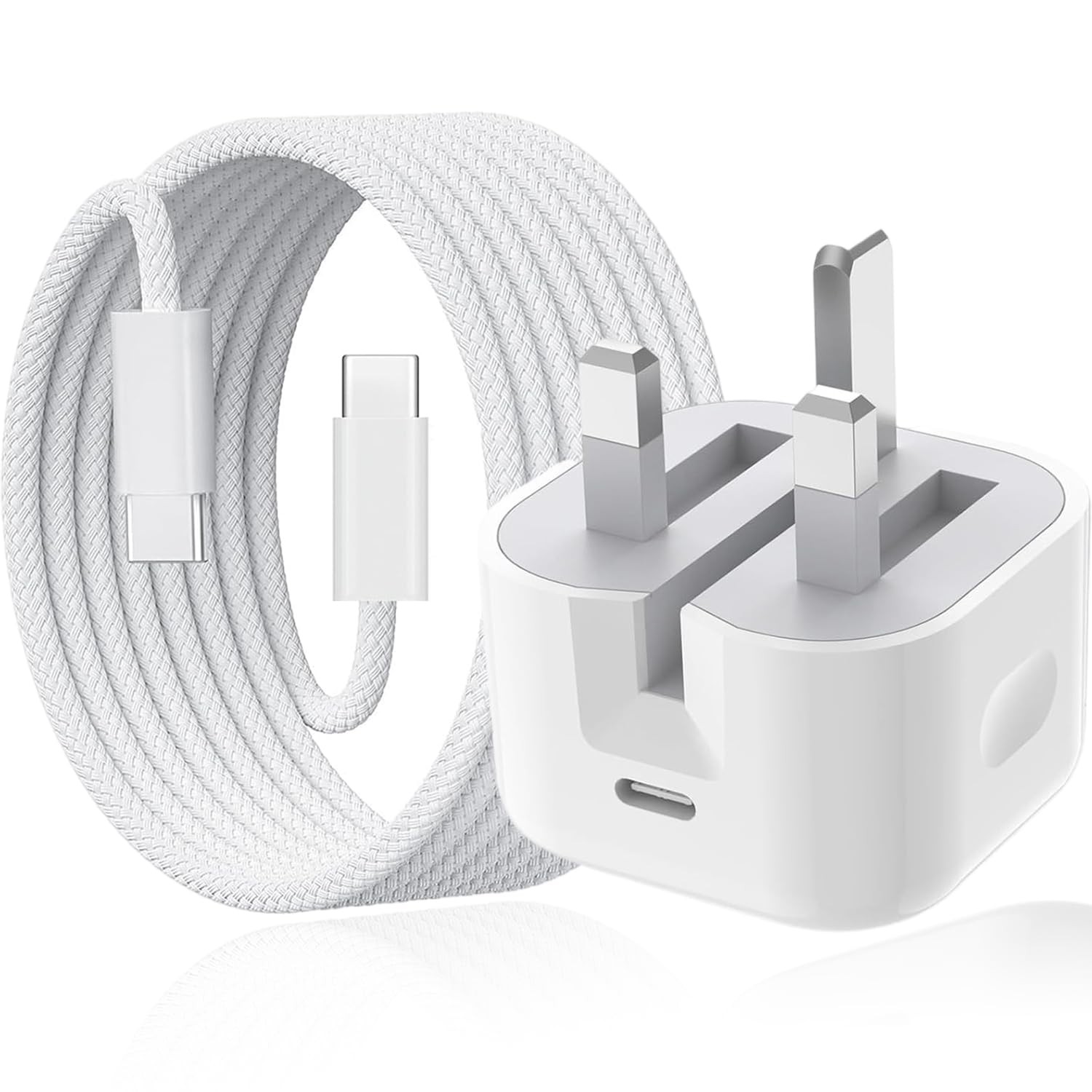 iPhone 15 16 17 Fast Charger, 20W Dual Port USB Fast Charger Plug and 2M Type C Cable, USB C Plug for iPhone 16/16 Pro/16 Pro Max/15/15 Pro Max/i-Pad, Macbook/AirPods, USB C Plug UK Power Adapter