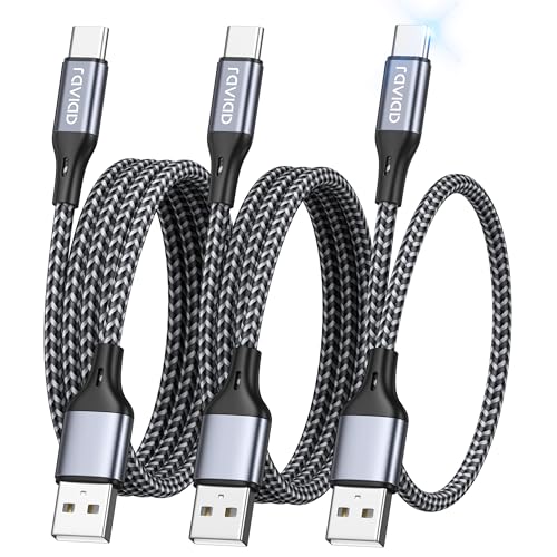 RAVIAD USB C Charger Cable [3Pack 0.3M 1M 2M], USB to USB C Cable Fast Charging Cable Nylon Braided Type C Charger Cable for iPhone 16, 15 Plus Pro Max, Samsung Galaxy S24 S23 S22, Pad Pro, Macbook