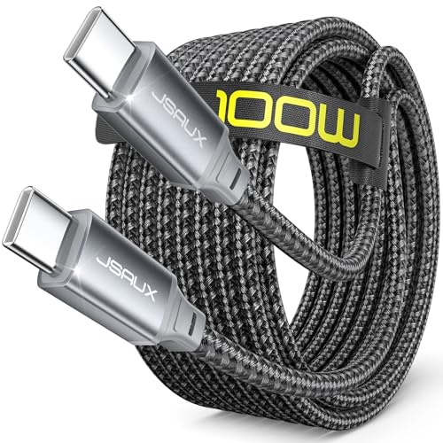JSAUX 100W USB C to USB C Charger Cable 2M, Type C iPhone 15 Fast Charging Cable Compatible with MacBook Pro Air, iPad Pro Air, iPhone 15/15 Plus/15 Pro/15 Pro Max, Galaxy S23+/S23 Ultra, Pixel-Grey
