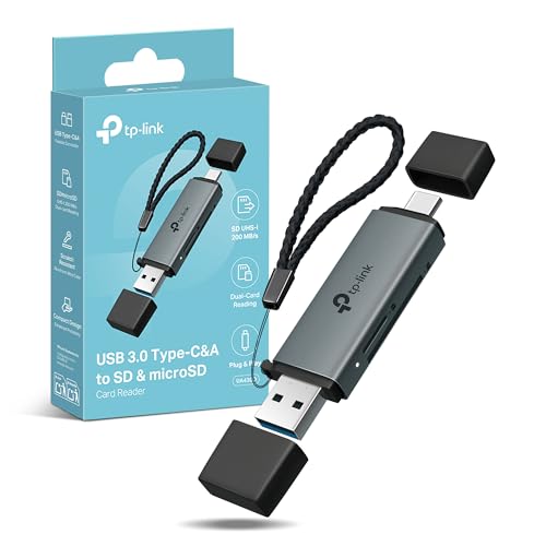 TP-Link UA430D USB 3.0 microSD & SD Card Reader, USB 3.0 Type-C&A Memory Card Reader Up to 2 TB Supported, Dual Reading/Writing Compatible with iPhone/Desktops/Laptops,Faster Transmit, Plug & Play