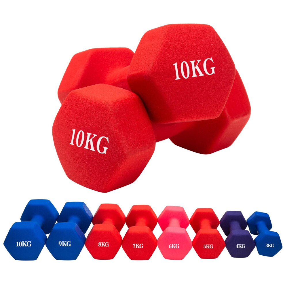 (Red, 2 x 10KG) Hampton&Stewart Neoprene Dumbbells Weights Gym