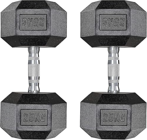 LIFERUN 1x20kg/1x25kg/ 2x10kg/2x20kg/2x25kg Rubber Dumbbell, Hex Dumbbells Coated Cast Iron Weight Sets, with Knurled Handles Anti-Rolling for Home Gym, Men and Women Strength Training, Weight Lifting